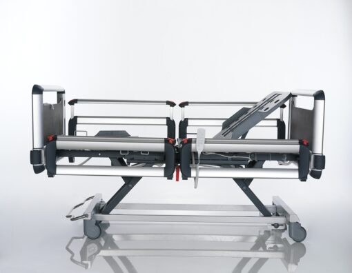 Capable de faire le mouvement de Trendelenburg/ proclive, de dos, de pied, de hauteur avec l`aide de moteur Commande manuelle de patient Panneau de contrôle de l’infirmière Fonction verrouillable avec l`aide de contrôle de l`infirmière CPR mécanique (position plat de la partie dorsale du lit en cas d`urgence.) CPR électronique Positions Fowler Vasculaires Mouvement de genou réglable avec le mécanisme graduel Panneau de tète et de pied facilement amovible et rails latéraux fabriqués en aluminium et en stratifié compact Roulettes pivotantes à 360° avec le verrouillage centralisé(125mm) Pare-chocs de protection en plastique. Cintre de sac à urine Clip de ceinture Batterie. Revêtement en poudre électrostatique. 32 Matelas de densité.
